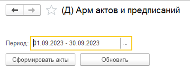 "Сформировать акты". Откроется окно "(Д) Формирование актов по