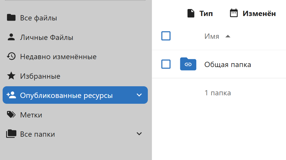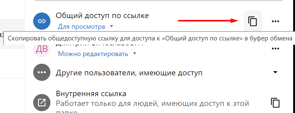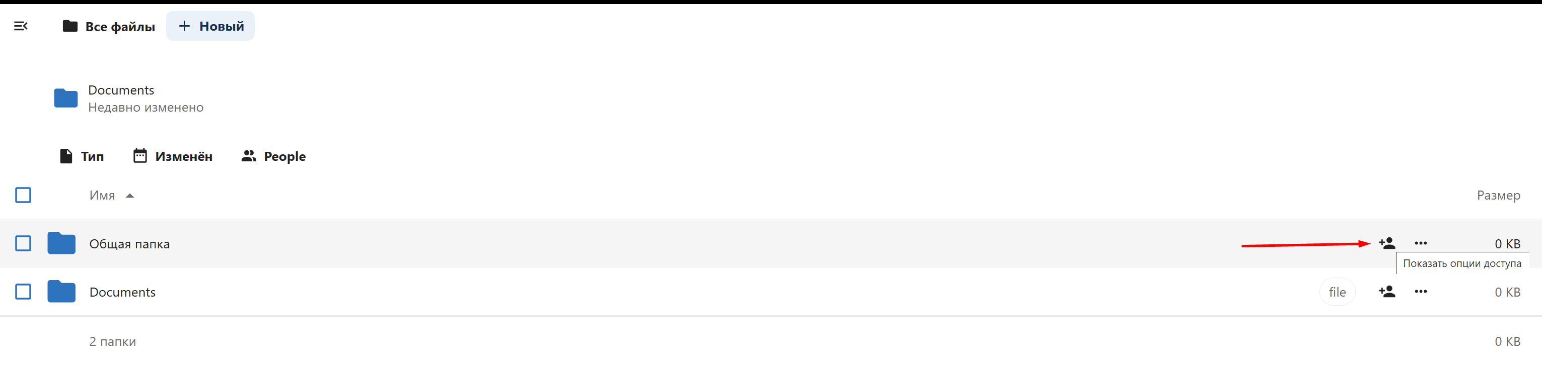 Для предоставления доступа необходимо нажать на иконку рядом с названием папки или файла: