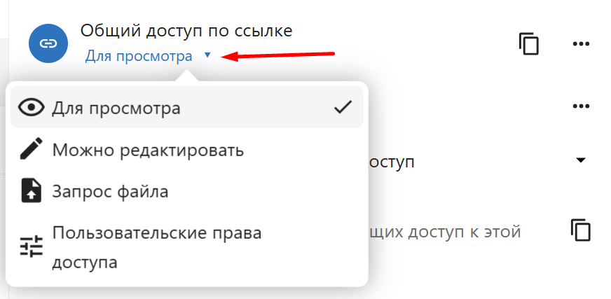 По умолчанию, доступ по ссылке предоставляется с правами "Для просмотра".