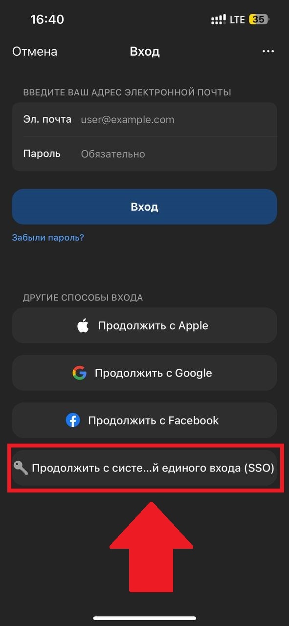 3. Нажимаем "Продолжить с системой единого входа (SSO)".