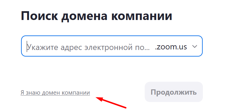 В случае, если отображается окно запроса адреса электронной почты для поиска домена следует нажать ссылку "Я знаю домен компании"