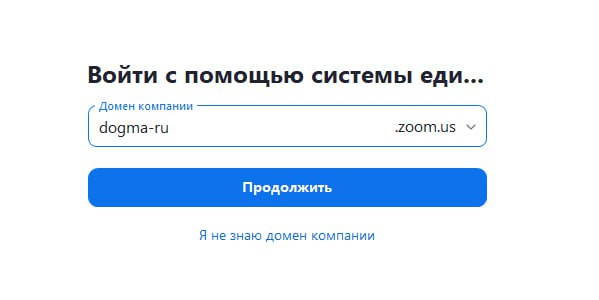 2. Затем ввести имя домена dogma-ru.zoom.us: