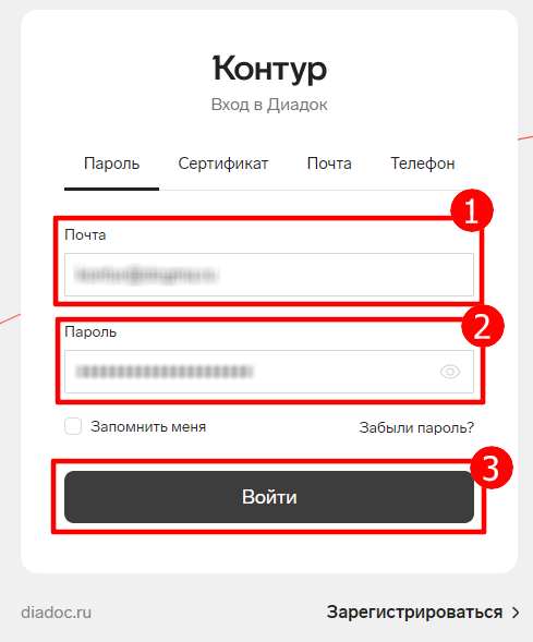 Пароль - сгенерированный Вами пароль, ссылка на генерацию приходит на почту (может быть в спаме), когда выдается доступ
