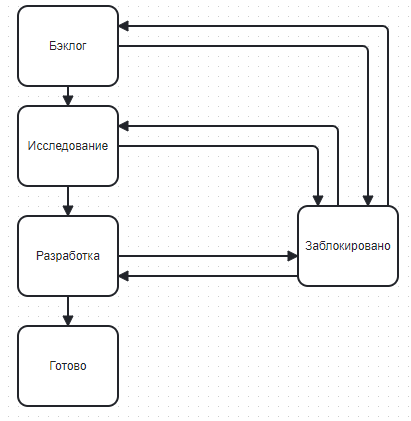 | Epic | Бэклог → Исследование → Разработка → Готово → Заблокировано |