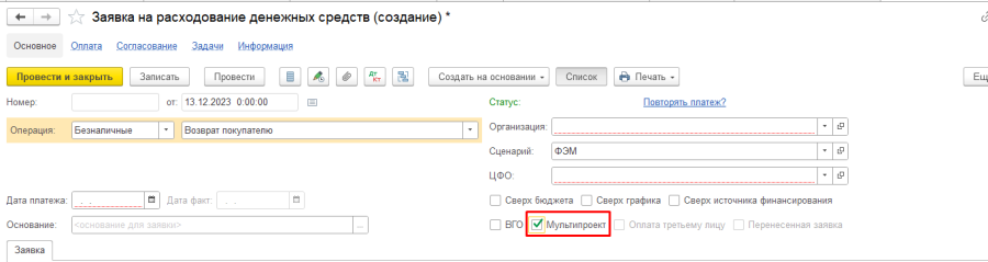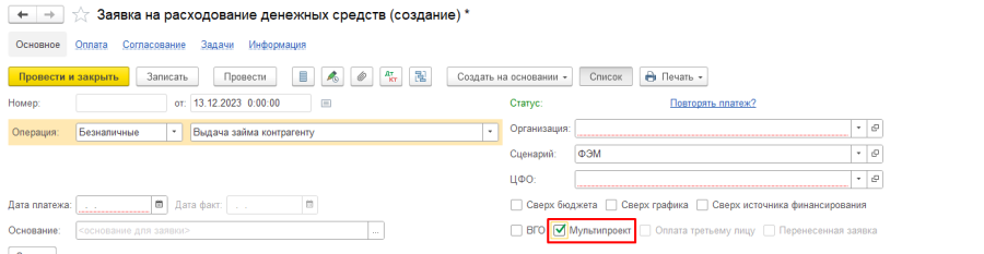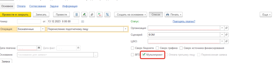 Система при записи заявки с несколькими проектам автоматически присвоит ей флаг "Мультипроект", однако это поле может быть скорректировано пользователем