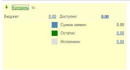 Ссылка "Контроль" позволяет пользователю наглядно видеть использование лимитов по статье оборотов и заданным аналитикам: