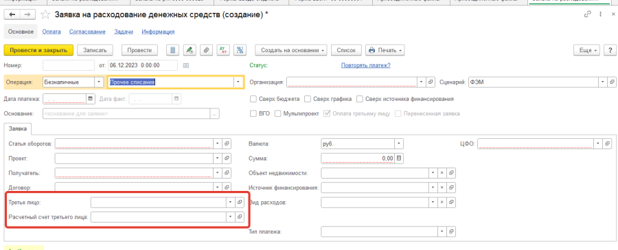 Формирование ЗРДС для оплаты третьему лицу