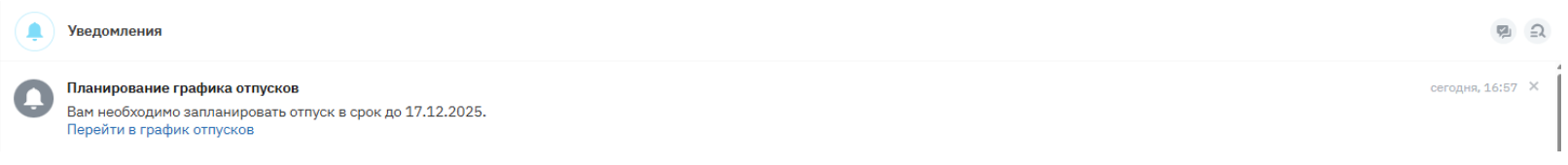 Шаг 2. Перейдите в график планирования отпусков с помощью нажатия на ссылку «Перейти в график отпусков» в уведомлении.