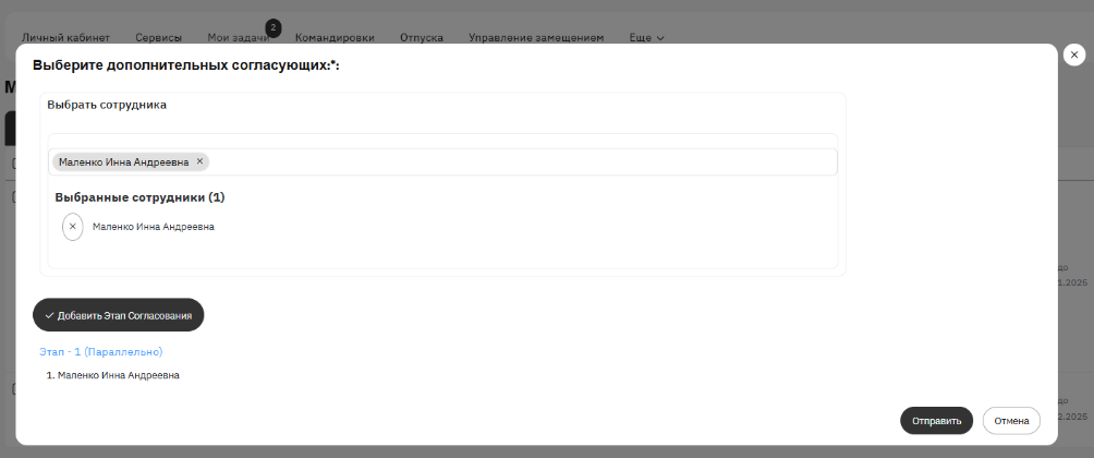 Шаг 3. Выберите одного или нескольких сотрудников, которые должны подтвердить отпуск сотрудника. Нажмите кнопку Отправить.