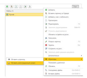- Перейти во вкладку Обзор, нажать кнопку «Еще» и выбрать Вставить регистрационный штамп (см. рис. 6). Вставка штампа осуществляется только в файлы WORD и Open Office Writer. При этом расположение штампа будет в левом верхнем углу печатной области файла (см. рис. 7).