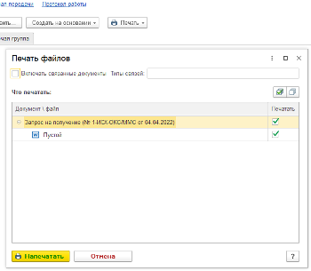 - Открывается дополнительное окно (Печать файлов), установить флажок в колонке Печатать и нажать кнопку Напечатать (см. рис. 10,11).