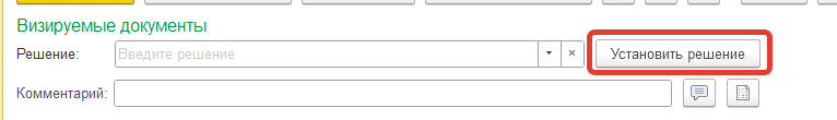 При необходимости пользователь может прокомментировать принятое решение. Для этого, требуется перед нажатием кнопки "Установить решения" заполнить поле "Комментарий". Комментарий для решения "Отклонено" - обязателен.
