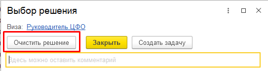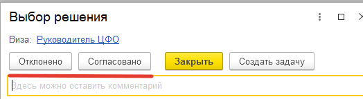 При выборе решения "Отклонено" согласующему необходимо оставить комментарий по решению.