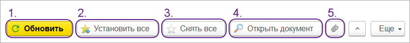 - "Снять все" используется для отмены выбора всех документов в списке;