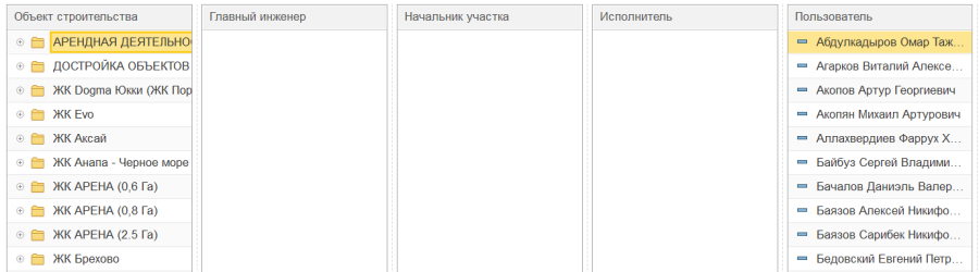 - просматриваете иерархию: главный инженер → начальник участка → исполнители