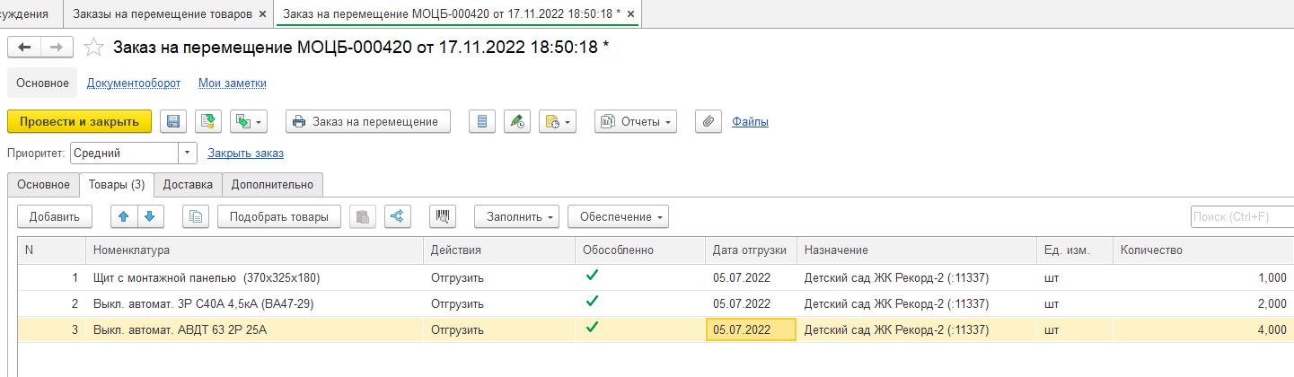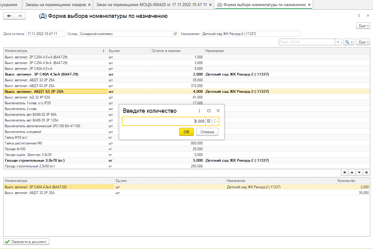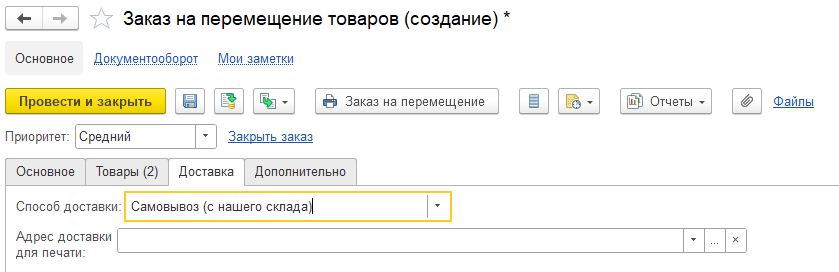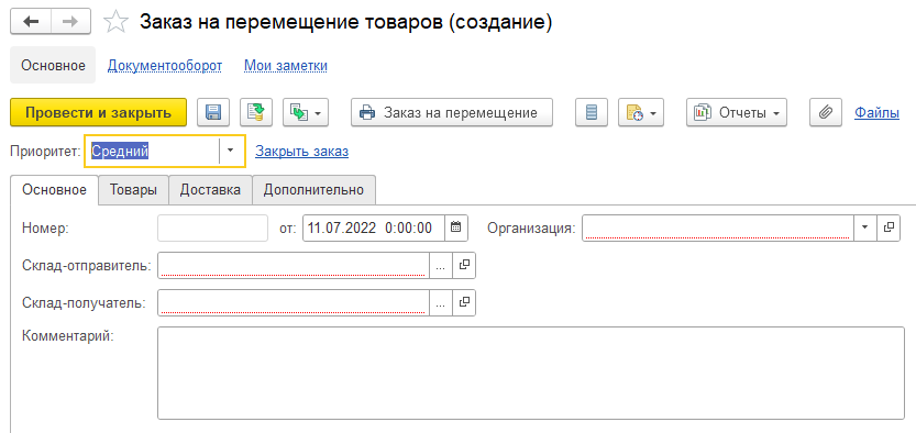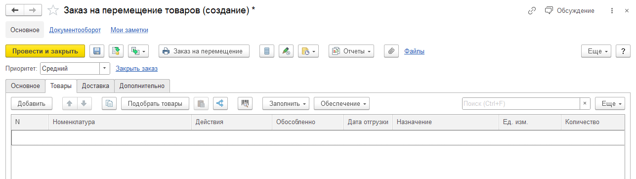 Заказ на Перемещение